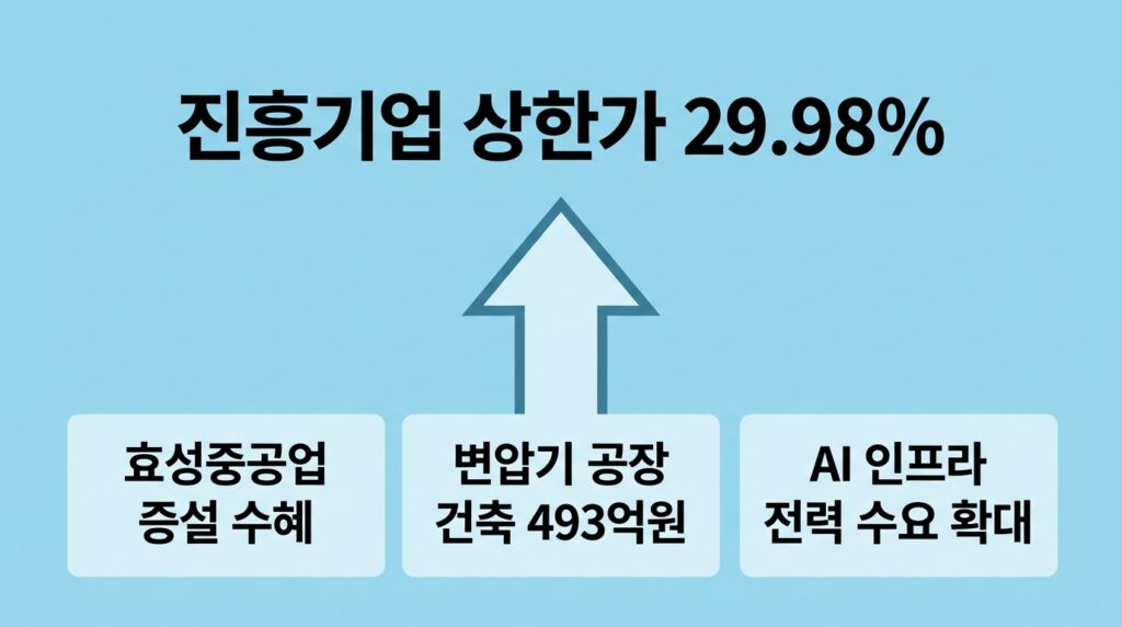여기에 더해, 시장에서는 계열사 간 시너지 측면의 수혜 기대감이 매수세로 연결되었습니다. 전력 인프라 투자 확대라는 글로벌 흐름이 국내 전력기기 기업들의 수주 확대로 이어지고, 그 공사 물량이 진흥기업으로 흘러들어올 것이라는 기대가 투자자들의 관심을 끌어올린 것입니다.